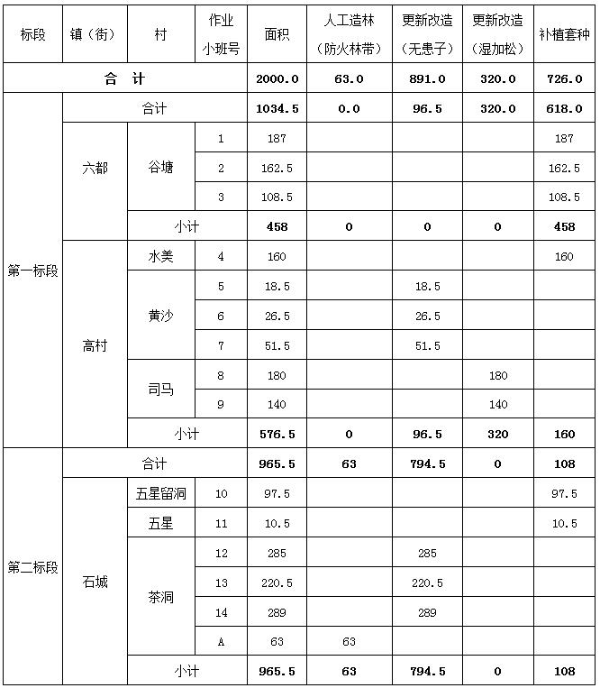 (二)、采購文件第二章 用戶需求書P7中“四、云安區(qū)2020年森林碳匯重點生態(tài)工程項目要求--(四)建設(shè)工程量”