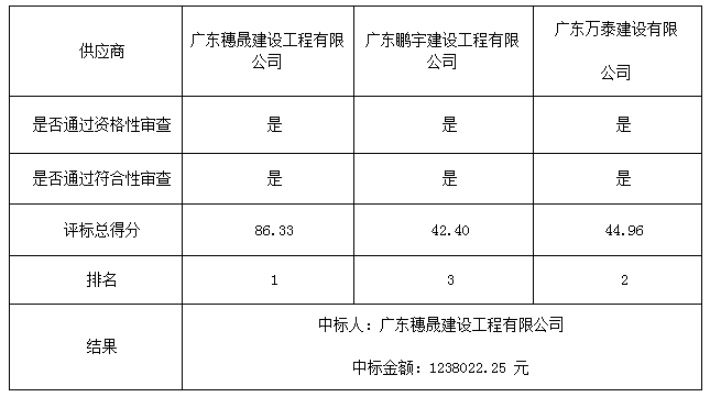 1:中標(biāo)供應(yīng)商名稱(chēng)廣東穗晟建設(shè)工程有限公司 法人代表 李輝龍 地址 茂名市電白區(qū)海濱新區(qū)第一小區(qū)單體小住宅D區(qū)D02號(hào)401房